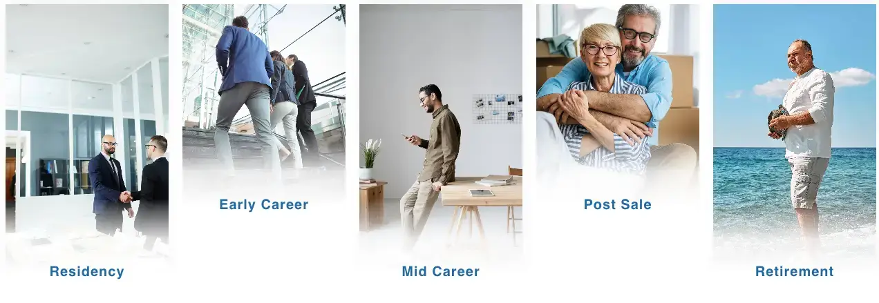 We support dental and medical professionals through every stage of their career—from residency to retirement. Our comprehensive approach begins with building a strong financial foundation through literacy, debt management, and insurance planning. As you launch and grow your practice, we guide you through ownership decisions, financial planning, and risk management. In mid-career, we focus on wealth accumulation, estate planning, and navigating industry changes. When it’s time to transition, we provide expert exit planning support before, during, and after the sale. Finally, in retirement, we help you preserve your wealth, manage expenses, and create a lasting legacy with purpose.